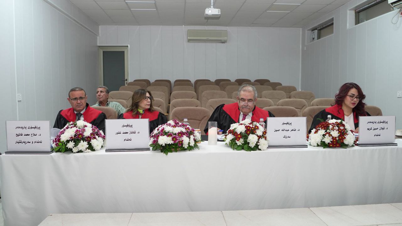 گفتوگۆی ماستەرنامەی ئەو پزیشكە بەسەرپەرشتی پرۆفیسۆر د.تاهیر هەورامی و پرۆفیسۆر د.شاناز محەمەد غەفور و پرۆفیسۆری یاریدەدەر د.سەڵاح محەمەد فاتیح و پرۆفیسۆری یاریدەدەر د.شیلان حسێن كەریم بەڕێوەچوو.
