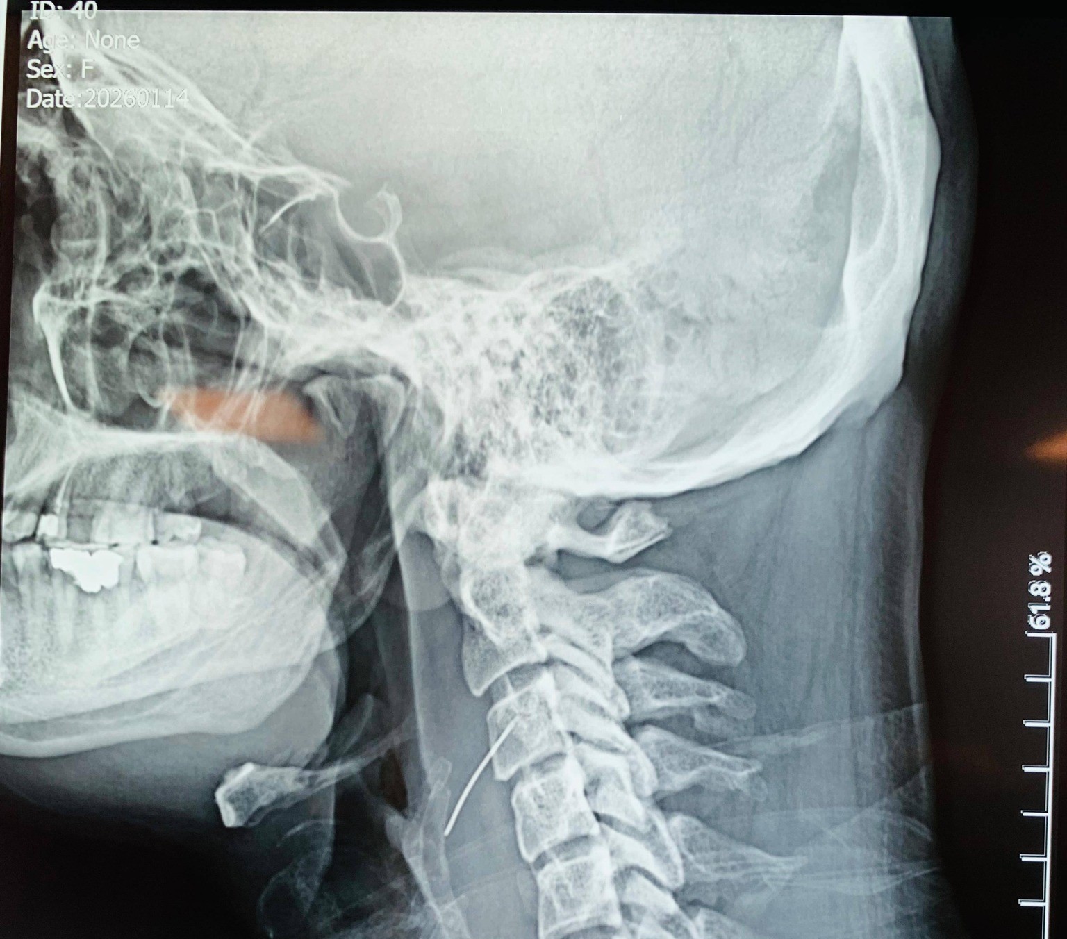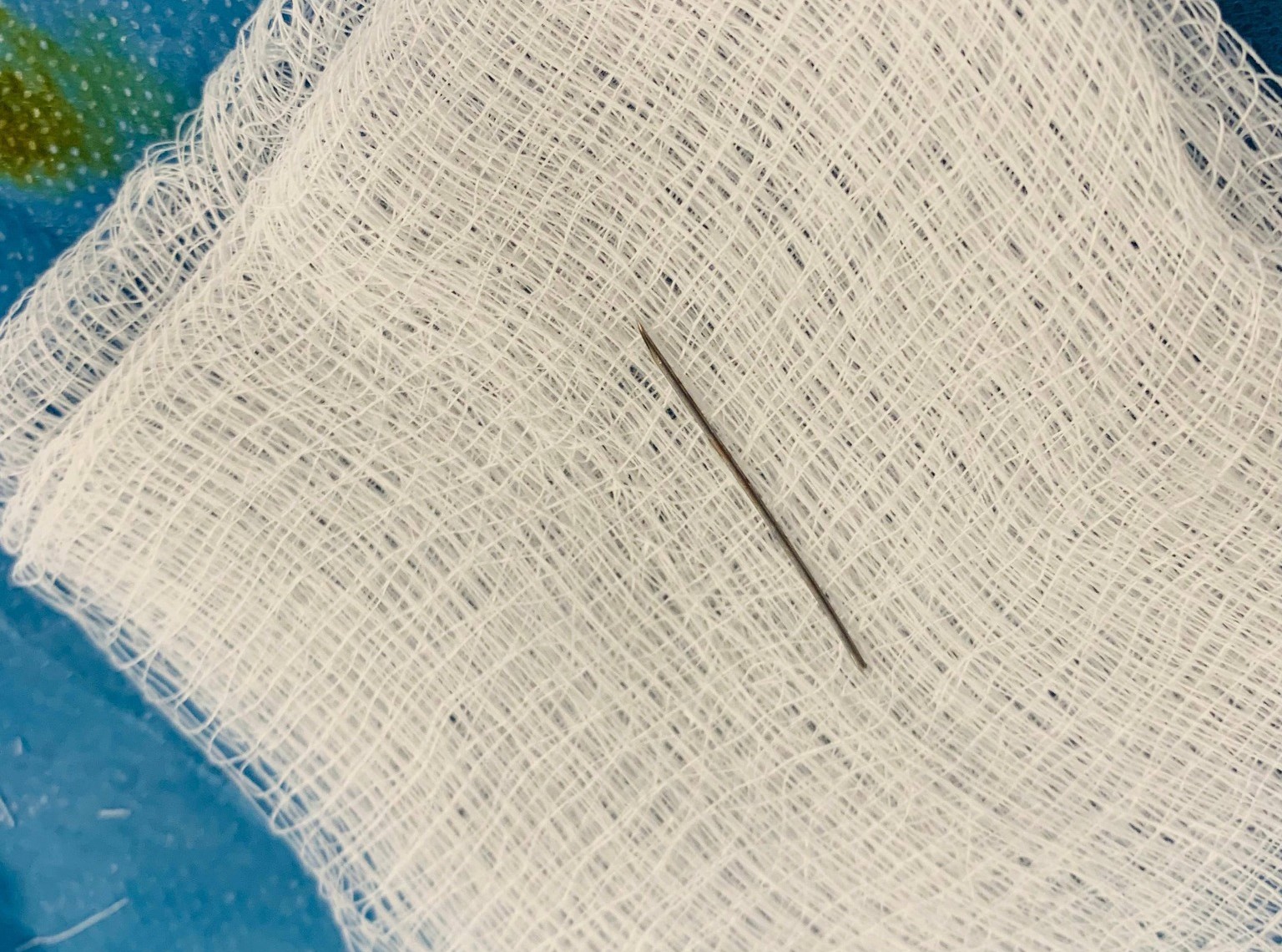 لە نەخۆشخانەی شار دوای ئەوەی پزیشكەكان دڵنیابوون لە گیربوونی تەنێكی نامۆ لە بەشی خوارەوەی قوڕگی نەخۆشەكە و نزیكبوونەوەی لە فەقەراتی ملی ، بە پەلە نەشتەرگەرییان بۆ ئەنجامدا و دەرزییەكی 3.5 سم لە قوڕگی نەخۆشخەكە دەرهێنا و مەترسییەكی گەورە لەسەر ژیانی لابرا ، كە بەوتەی خۆی دەرزییەكە لەناو ئەو مریشكەدا بووە كە خواردوویەتی.
